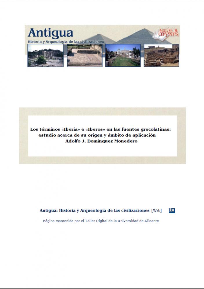En aquest article, Adolfo Domínguez Monedero examina les fonts gregues i llatines que parlen dels ibers i d'Ibèria, tot argumentant que l'origen dels termes iber i Ibèria es localitza al sud de la Península Ibèrica i, més específicament, a l'àrea d'Huelva i Cadis. Des d'aquí, el nom i, en correspondència, la cultura es va estendre fins al conjunt de la Península Ibèrica.