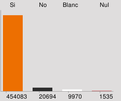 Com en les anteriors convocatòries, els ciutadans que han votat s'han inclinat majoritàriament per la independència del país i, així, després de les tres consultes, els resultats informen que 454.083 persones (93,4%), de les 486.282 (entre el 21 i el 23,6% del cens, segons l'edat) que han votat, ho han fet a favor. (Font: Coordinadora Nacional per la consulta sobre la Independència).