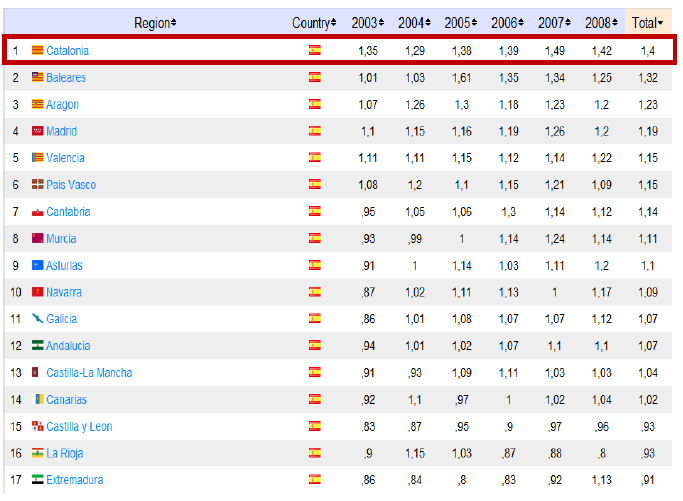 Els diaris informen que les regions espanyoles amb publicacions amb un índex d'impacte més alt, fora de Madrid, són precisament Catalunya, Balears, Aragó, València i, després d'Euzkadi i Cantàbria, també Múrcia.