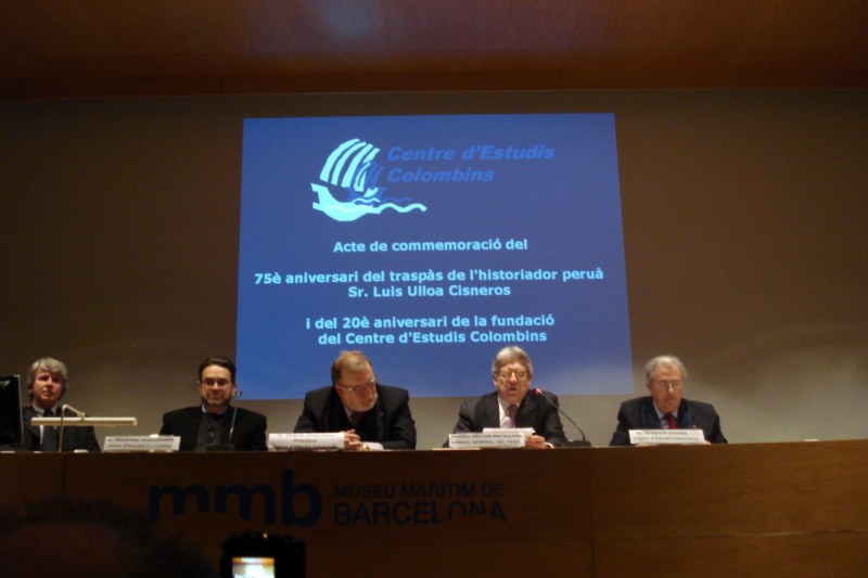 L’acte tingué lloc a la Sala d’Actes del Museu Marítim de Barcelona, i fou presidit pels gestors del Centre d’Estudis Colombins amb la participació del Cònsul General del Perú Ministro Héctor Matallana.