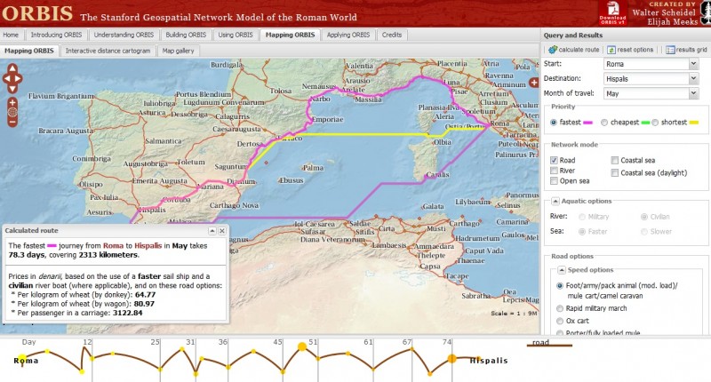 Traslladant els models actuals d'optimització de rutes i costos associats a aquestes, l'equip de Stanford ha desenvolupat un sistema interactiu capaç de demostrar que un dels condicionants que van determinar l'expansió de la civilització romana, en gran part, es devia també als costos i, precisament, han traslladat aquesta visió a un GIS en el qual estan carregades les rutes fluvials, rutes marítimes i calçades terrestres.
