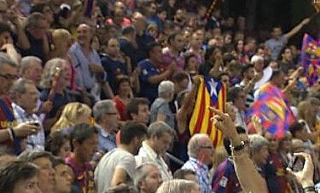 En aquest vídeo de TVE es poden escoltar els crits sorgits dels seguidors blaugranes d’"independència, independència" per celebrar la victòria a la lliga de bàsquet contra el Madrid, que se sumen a una reacció cada cop més evident en actes públics de tota mena, ahir per celebrar la lliga, l’altre dia en el concert contra la Sida al palau Sant Jordi o al lliurament del Premi d’honor de les lletres catalanes al Palau de la Música, on el públic va estar més de cinc minuts amb crits d’independència. Lamentablement un sentiment de manca d’autoestima fa que fins i tot la premsa catalana ho obviï de manera flagrant.