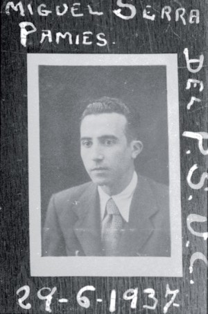 Miquel Serra i Pàmies, nascut el 17 de gener del 1902, fou el vicesecretari i el tresorer del Partit Socialista Unificat de Catalunya. La seva ideologia marcadament catalanista i amb un fort sentiment social va fer que el President Companys diposités en ell la seva confiança tot nomenant-lo Conseller de Proveïments el 29 de juliol del 1937. La seva cartera de competències creixeria durant el desenvolupament de la guerra ocupant també la conselleria d’Obres Públiques.