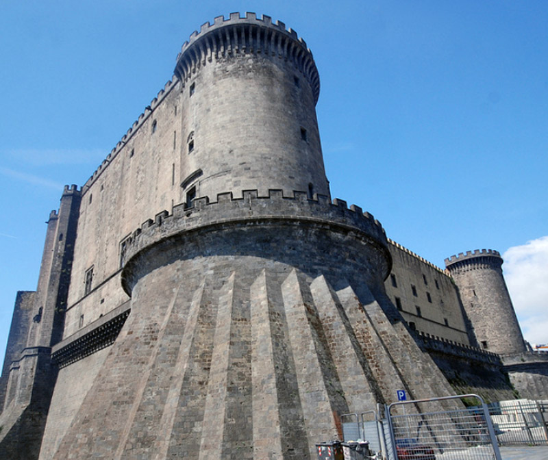 El primer assaig d’aquesta nova arquitectura militar es localitzà a la nova capital de fet de la Confederació de Catalunya-Aragó : Nàpols. La iniciativa va ser del rei Alfons V, dit El Magnànim, que fou qui incorporà el Regne de Nàpols a la Confederació, després de molts anys de guerres amb la Casa dels Anjou (la dinastia francesa que havia conquerit Sicília, i n’havia estat foragitada pels catalans).